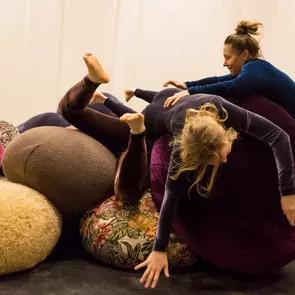 Safarium (Landing) ⚪ ⚫ ⚫ Se alle bilder, videoer, lydklipp, vedleggEn interaktiv danseforestilling som tar utgangspunkt i opplevelse av verden gjennom kroppslige møter; mellom ulike kropper eller mellom kroppen og omgivelsene. Prosjektet beveger seg formmessig mellom å være en forestilling og et verksted, et laboratorium og en safari, der barna på ulike måter inviteres med i utforskning av rom og bevegelse sammen med utøverne. Gjennom sanselig og taktil utforskning av rommet, eller baskete omfavnelser, får publikum oppleve både fysisk kraft og sensibilitet på nært hold. Målet er å utfordre publikum til erfaring av kroppen utover det hverdagslige. Uttrykket utspiller seg i et taktilt landskap, som utøverne og barna deler- et landskap som kan plasseres på ulike steder på skolen eller andre arenaer. Landskapet fungerer både som forestillingsrom, og som en midlertidig installasjon- et kunstverk i seg selv. Gjennom forestillingens ulike situasjoner transformeres både utøverne og landskapet. Safarium er spesielt tilrettelagt for barn med spesielle behov, men kan tilpasses alle. Co produsent: INK2013 (Den Kulturelle Skolesekken og SEANSE) Om utøvere og produsenter![]()